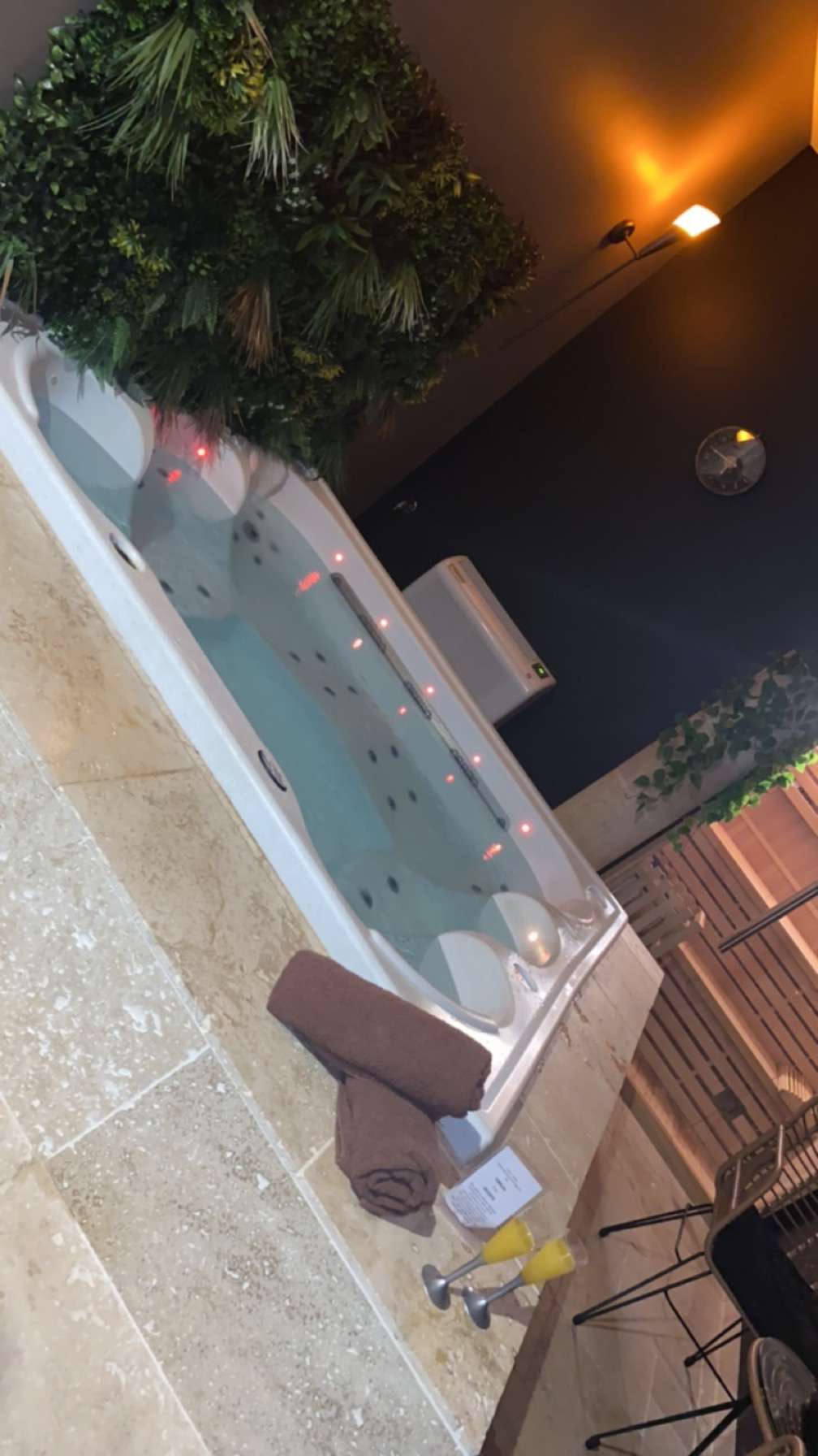 Un moment magique dans la suite privée cupidon... Détente dans la baignoire balnéo avec coupe de champagne et massage en duo qui fut un régal 🥰 tout été parfait !!! 👌🤗 Merci à nos 2 masseuses Léanna et Aurelie !