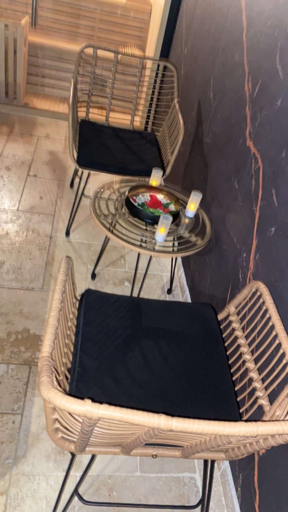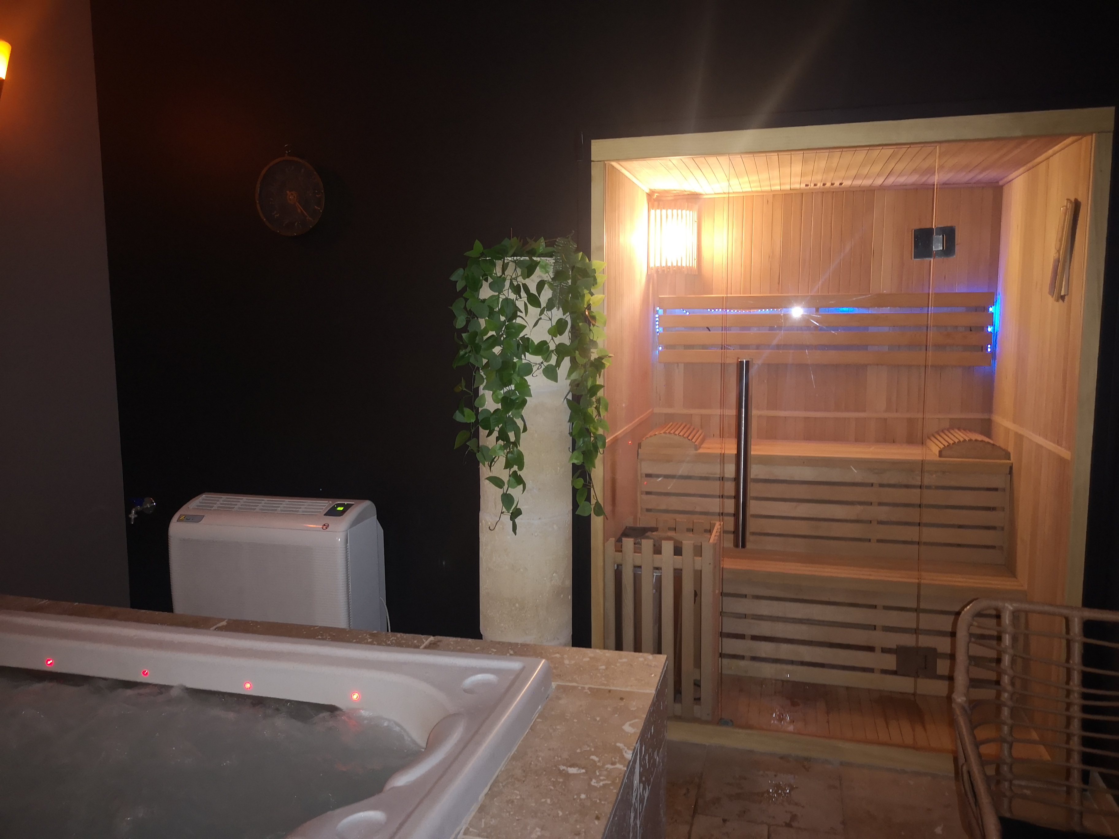 Le jacuzzi et le sauna sont au top, l'ambiance et le décor sont super, seul bémol je dirais la musique... Ça tourne en boucle, mais sinon on a passé un bon moment en amoureux 🧡